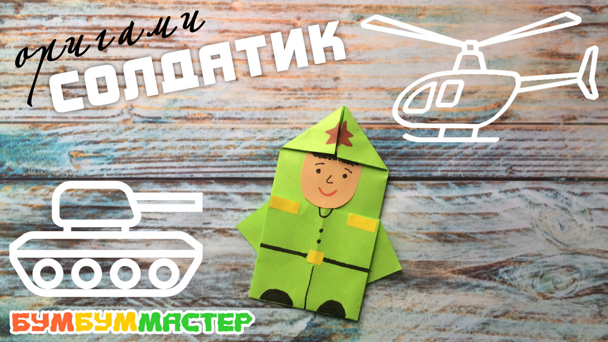 В этом выпуске мы сделаем бумажного солдатика из цветной бумаги. Оригами для детей. Интересный и простой способ. Детям точно понравится!