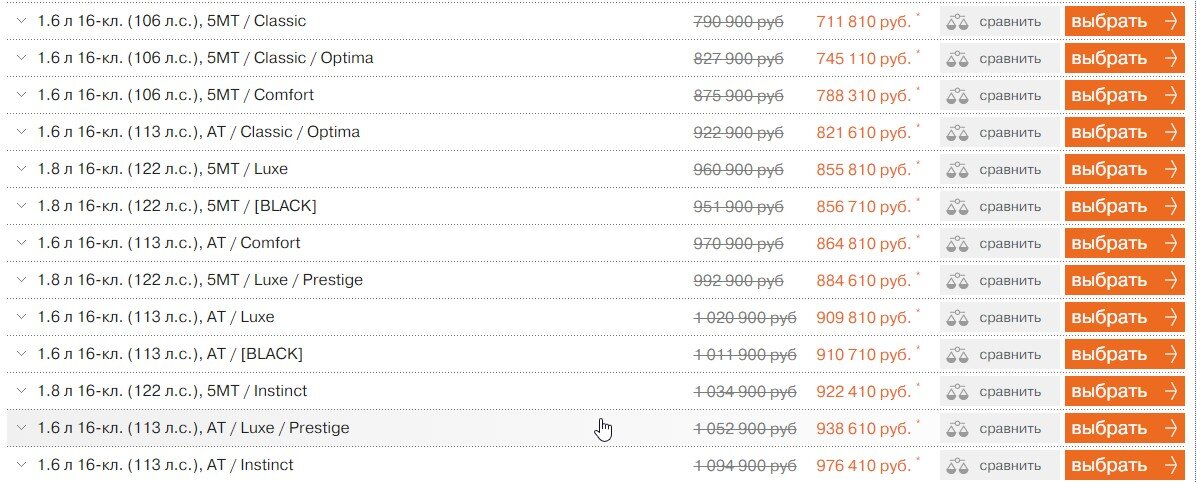 Взяли с двигателем 1,6 на механике в комплектации комфорт. Ценник вместе краской получился 887900 рублей. В подарок дали зимнию резину Nordman, резина хорошая, на Дастере уже 7 лет стоит, но думаю уже менять. Также установили газовые опоры, на этом все. Допов нам не накручивали. И это плюс данного автосалона.