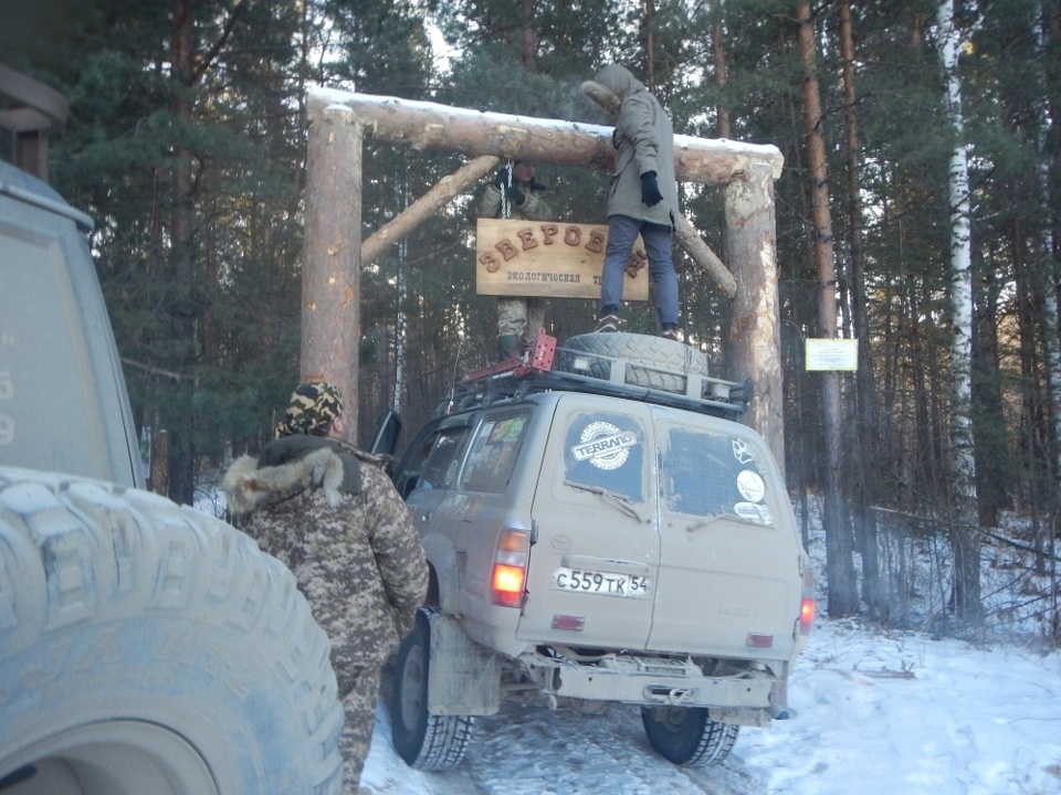 Сезон соревнований закончен, ездить особо не куда, поэтому приглашение экологов помочь с обустройством " Экологической тропы Зверобой" было воспринято на ура . Выехало три экипажа с ТРЁХ Новосибирских клубов Основная подготовка была проведена заранее, и нам оставались лишь штрихи. Но они требовали знаний картографии и навигации :-) Управились быстро, всё к открытию тропы 25го ноября готово . И что делать дальше озверевшим от безделья джиперам? Тем более находились мы уже в легендарных для нашей братии местах — предгорьях Салаирского кряжа. Совещание было недолгим, первоначальная цель поставлена — набрать чего то нужного для юбилея клуба (чего — пока не скажу) . После кратких дебатов, у одного экипажа оказались неотложные дела государственного масштаба и они поехали домой. Остался я один на один в составе двух Крузаков и четырёх женщин готовых на всякие безбашенные поступки. Ехать, так ехать . Поскольку цель первоначальная была — чего то там набрать, далеко ехать не планиро