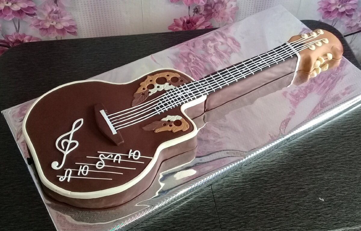 Вот такой необычный торт в форме гитары Ovation, я делала для мужчины на Юбилей. Что бы сделать торт похожим на оригинал гитары, мне даже пришлось зарегистрироваться в группе любителей гитар Ovation.