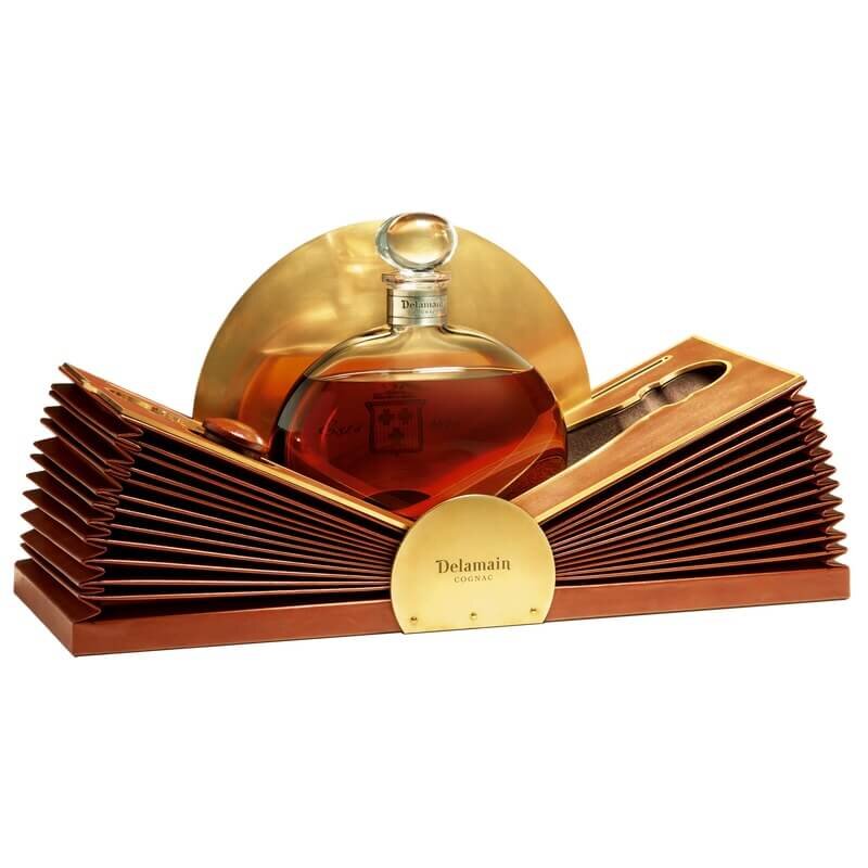 Представленный в потрясающем графине ручной работы с чистыми изгибами, он идеально помещен на кожаный веерообразный презентационный футляр, который открывается, как книга, чтобы показать коньяк, отдающий дань уважения основателю Джеймсу Деламейну, рассказывая его историю через обилие ароматов и утонченность вкуса.