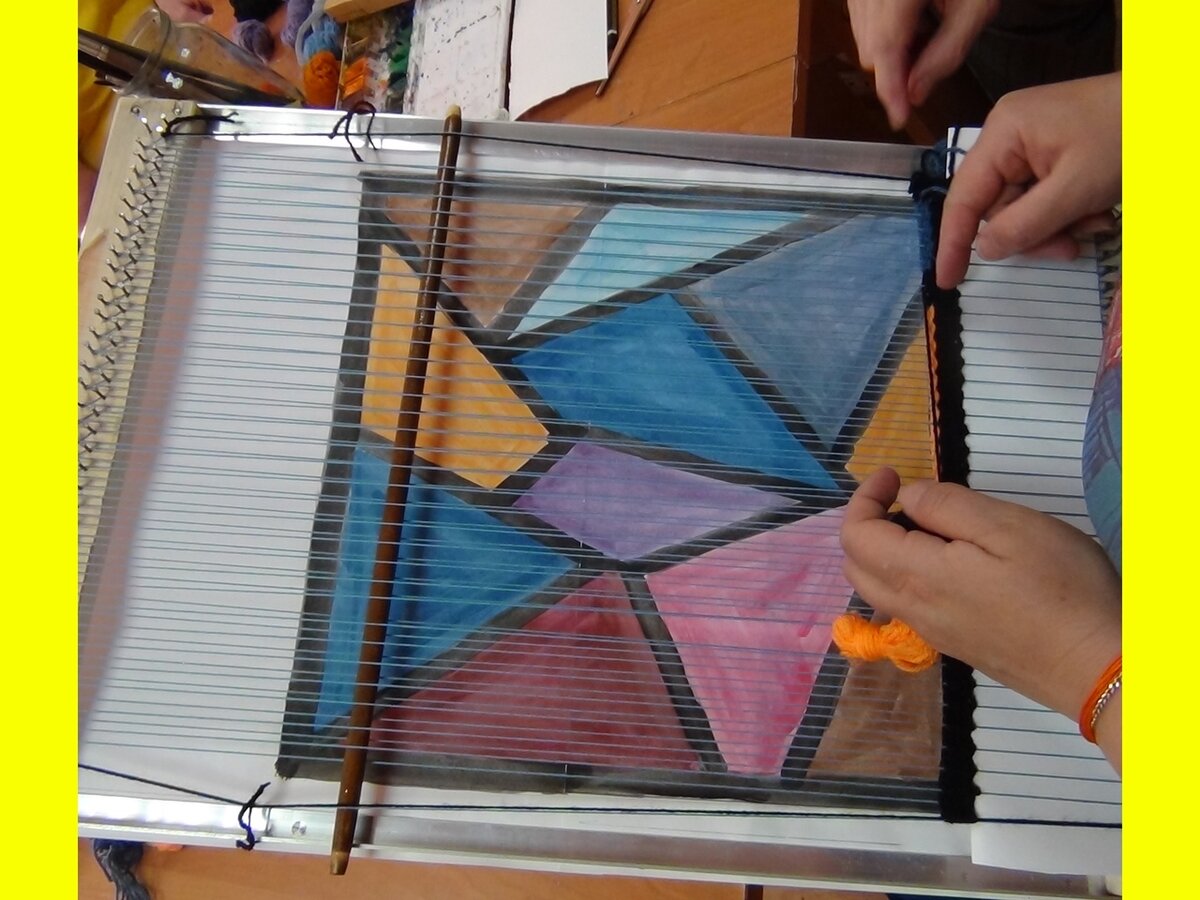 Хлопчатобумажную нитку прокладывайте сзади основных нитей;
