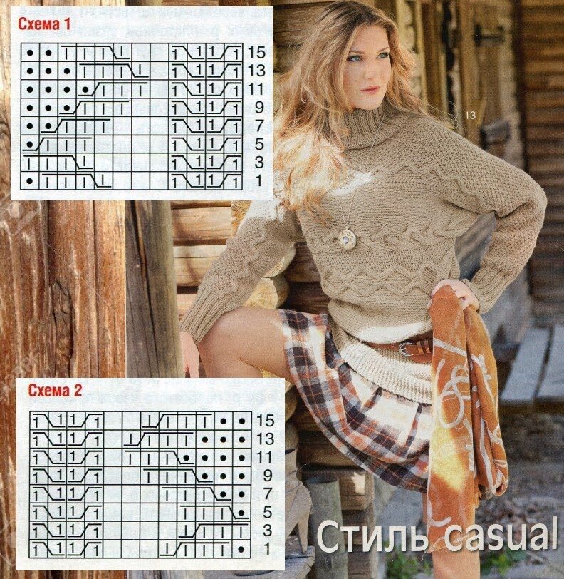 Рельефный пуловер, связанный поперек.