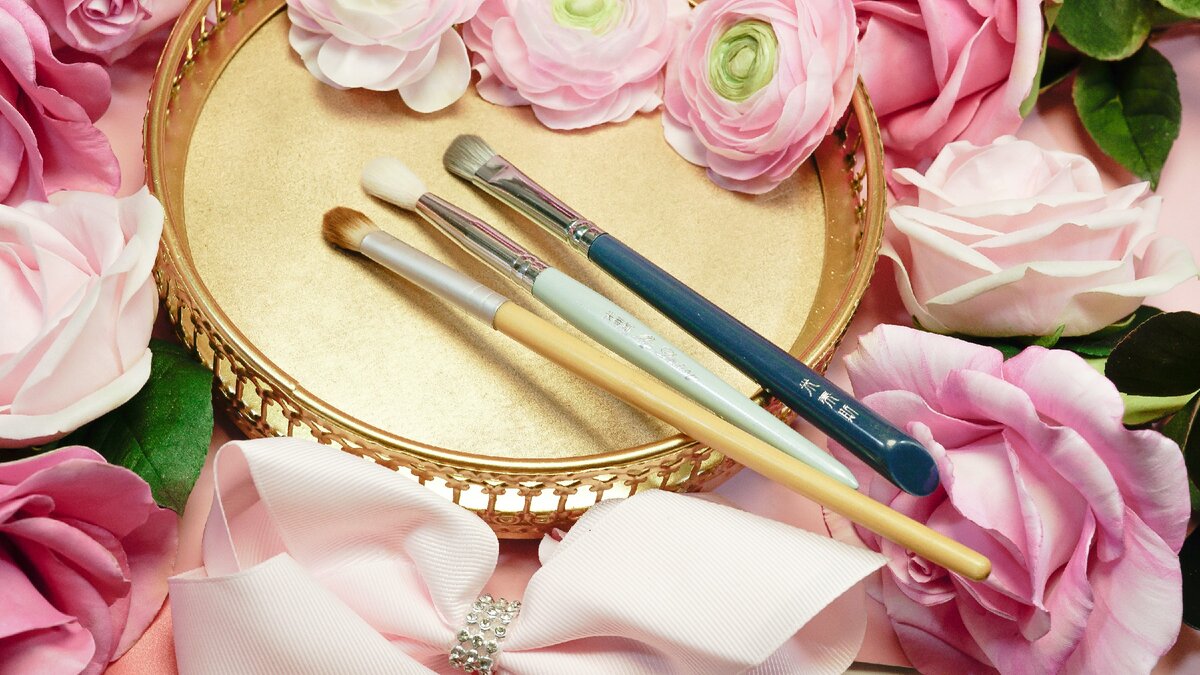 Особенно обратите внимание на кукурузное волокно. У них пористый ворс, который хорошо цепляет и тянет частички теней. Растушевка получается лёгкой.