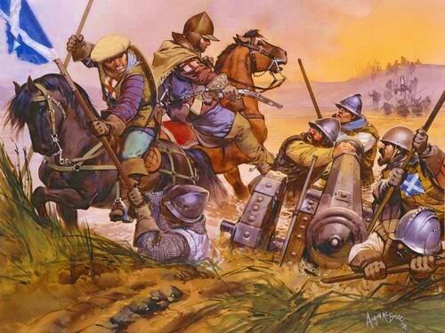 В свою очередь, помещики образовывали свиту короля. Это означало, что помещики в числе прочего выполняли военные обязательства по требованию короля. Армии помещиков состояли из хорошо вооруженных и обученных солдат. Однако мобилизация частных армий во многом определялась личными предпочтениями помещиков, а условия службы часто оставляли пространство для толкований и интерпретаций. Мятежные помещики часто занимались тем, что грабили округу и сеяли смуту. Дело доходило до уличных боев в Эдинбурге, как например, в 1520 г. из-за конфликта между кланами Дугласов и Гамильтонов. К счастью, содержание частной армии было дорогим удовольствием, поэтому свиты помещиков в большинстве своем были немногочисленны. Численность армий в случае национальной мобилизации обеспечивалась за счет рекрутов.