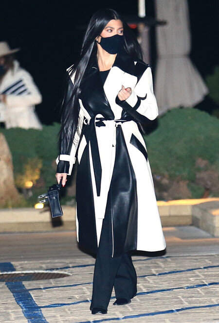 Кожаные пальто последние несколько лет бьют все рекорды популярности. Как правило, звезды и модные инфлюенсеры предпочитают варианты в черном цвете, однако на этом их выбор совсем не ограничивается. Кортни Кардашьян тоже нашла свою идеальную модель, только в более необычном исполнении: звезда выбрала трендовый тренч с черно-белыми вставками, который идеально сочетается с любыми базовыми