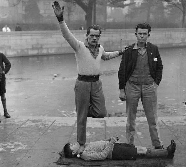 Чарльз Хайфилд - самый сильный мальчик в Великобритании, выдерживал вес своего отца на своей шее, 1932г.Странное у них представл