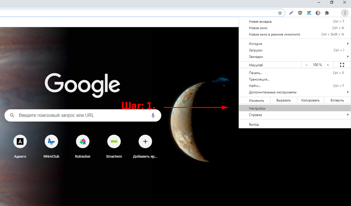 Шаг 1: откройте настройки, кликнув на 3 точки в правом верхнем углу окна браузера .