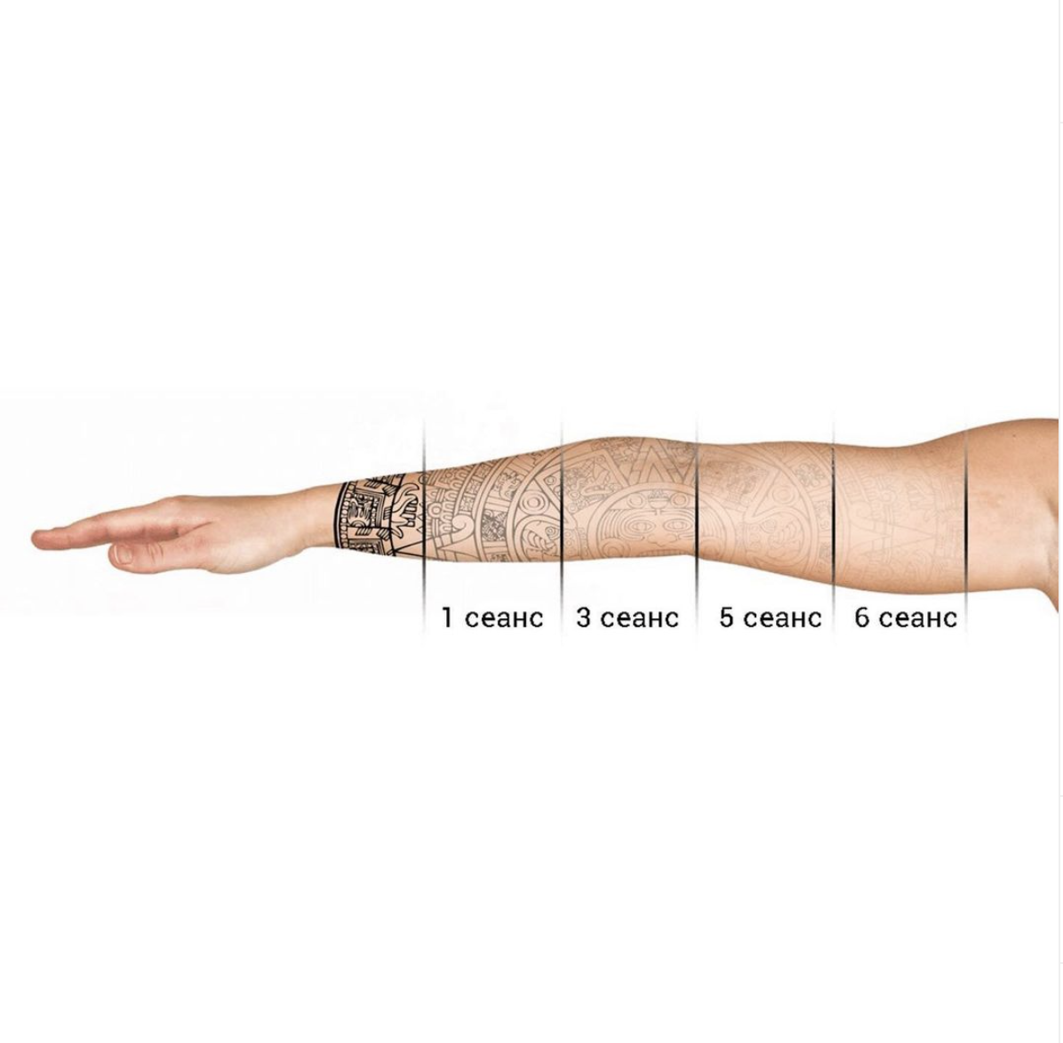 По опыту можем сказать, что большая часть татуировок осветляется примерно за 3 сеанса.