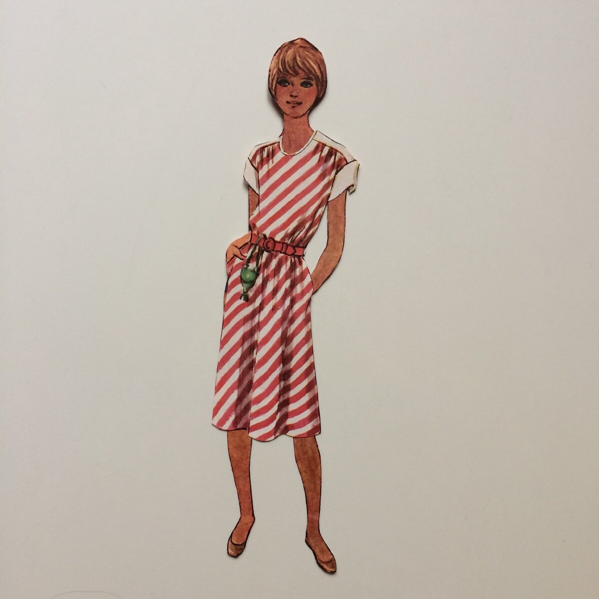 У Оли странный коричневатый тон кожи и довольно скудный гардероб. Впрочем, именно за это я всегда журнальных кукол и не любила - мало одежды, негде развернуться фантазии. С Олей я практически и не играла, только одежду ей примеряла время от времени.