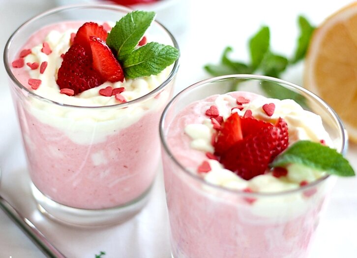 - Взбейте клубнику, молоко и мороженое в блендере.