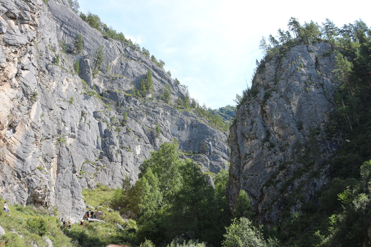 Склоны ущелья представляют собой высокие известняковые скалы, высота которых достигает 100–150 метров. Но при этом есть здесь такие места, где ущелье заметно сужается до 15–20 метров.