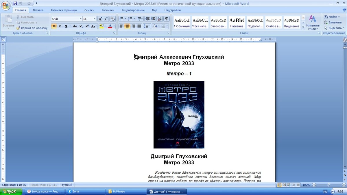 Вот не зря я чувствовал, что мне нужно прочитать эту книгу, несмотря на всю мою нелюбовь к фантастике в любом ее проявлении. Но "Метро 2033" - это гораздо глубже, чем просто боевая фантастика. Это философия жизни в условиях, когда общество находится на самом краю, когда до гибели остается совсем чуть-чуть. И именно здесь лучше всего проявляется человеческая сущность: страхи, паника, меркантильность, апатия или, напротив, яростное желание жить, достичь своей цели.