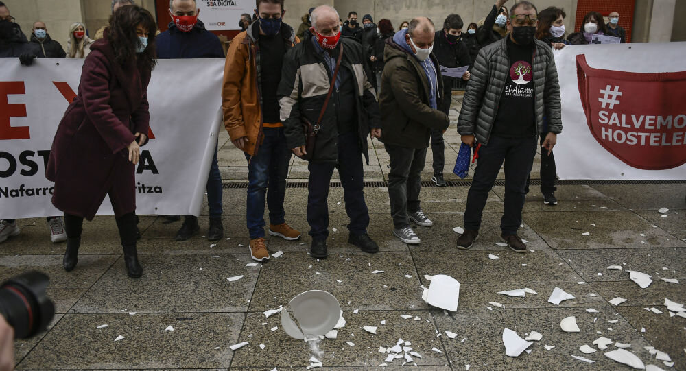 Владельцы испанских кафе, баров и ресторанов устроили протест, они требуют от властей финансовой помощи для того, чтобы сфера общепита могла выжить.