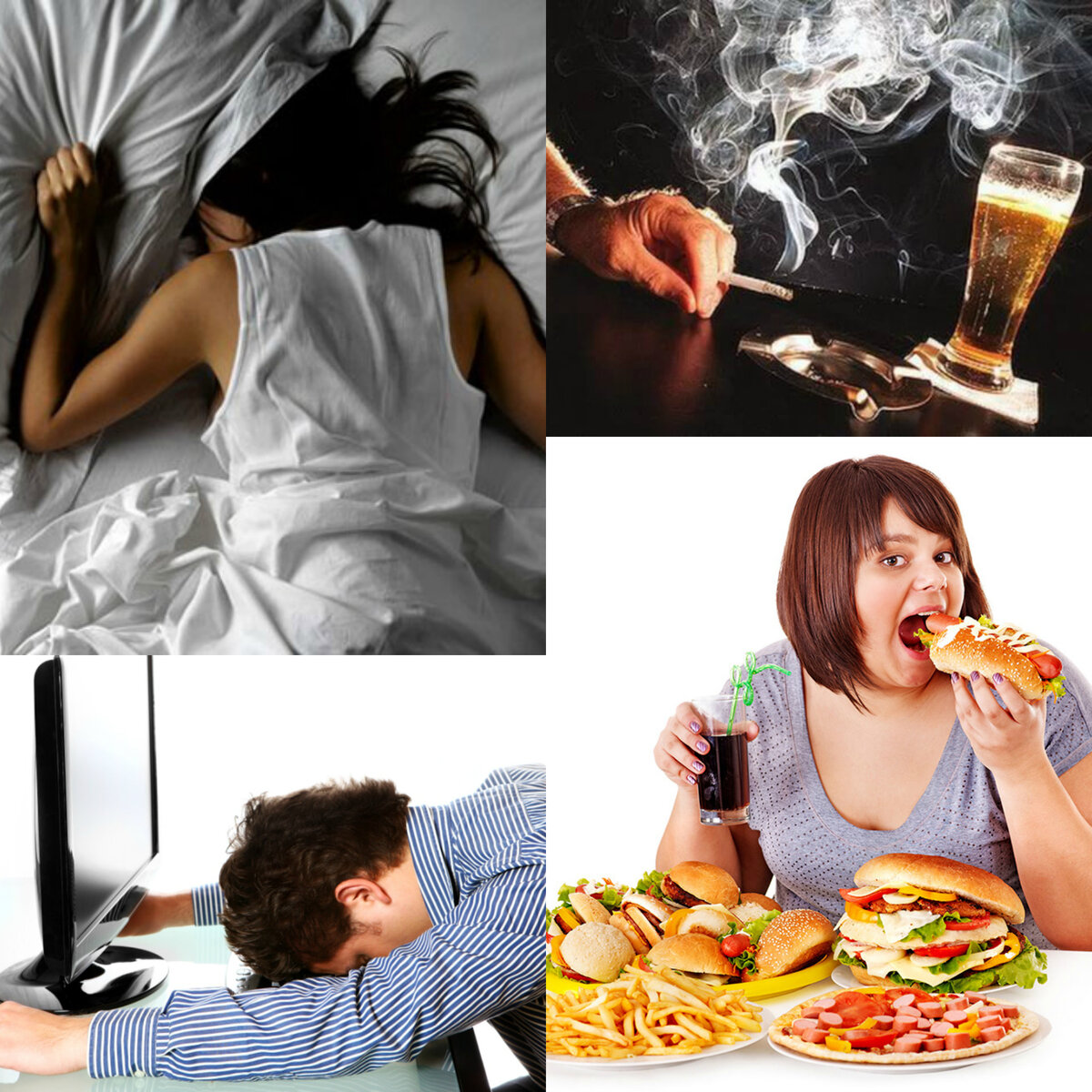 Наиболее распространенные вредные привычки связаны с алкоголем, табаком, сексом, сахаром, мясом и всевозможными крайностями . Следует иметь в виду, что проблема обычно не в веществе, связанном с самой привычкой, а в паттерне зависимости. Вегетарианцы могут не согласиться, но проблема не в мясе, а в его чрезмерном потреблении. То же самое и с другими предметами.