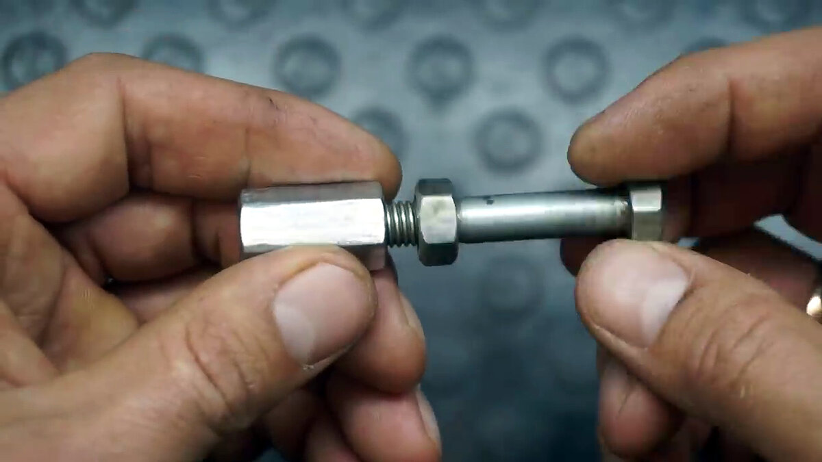 Нам понадобится соединительная (удлиняющая, переходная) гайка М8, а так же боль М8 с простой гайкой.