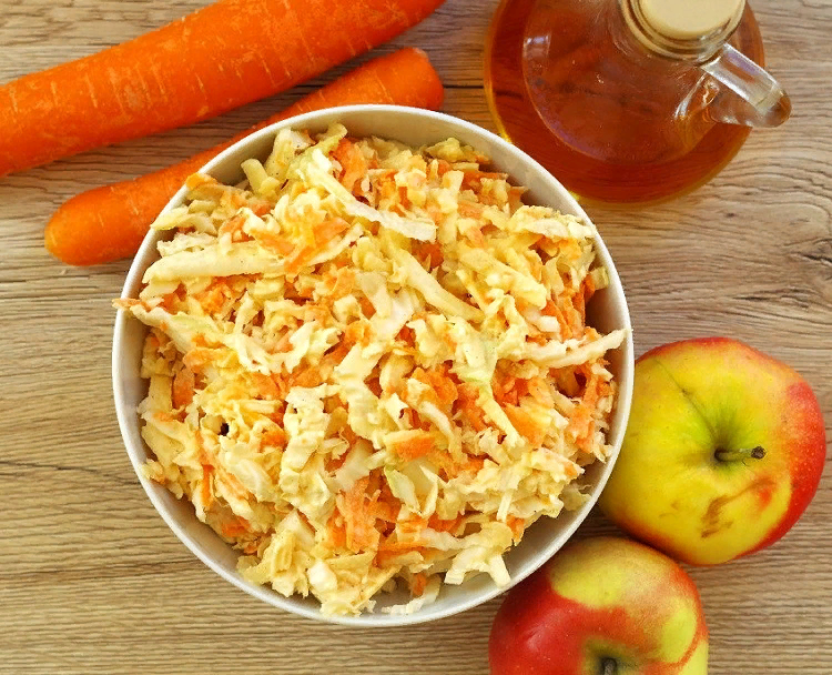 Рецепт быстрого салата для ужина из пекинской капусты, яблока и моркови.