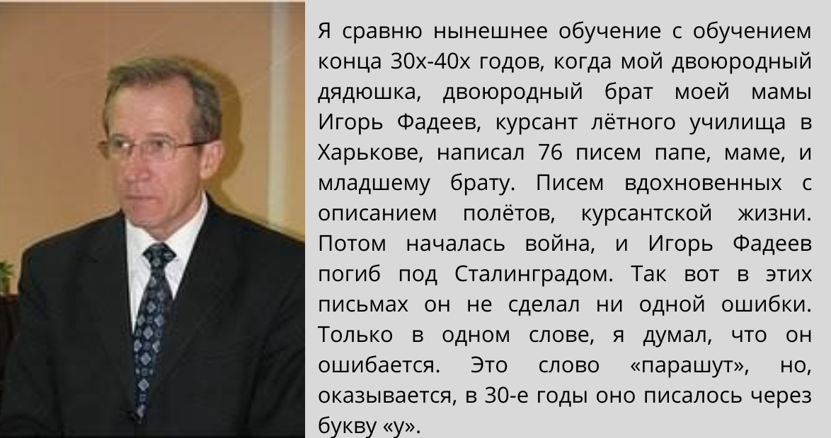 Надо сказать, что внимание к письменной речи, любовь к чтению, внимание к выразительному слову, выразительному чтению были характерны для традиционной советской школы, в которой также были недостатки, но, тем не менее, тогда учили серьёзно, дисциплинированно и добивались больших успехов.
