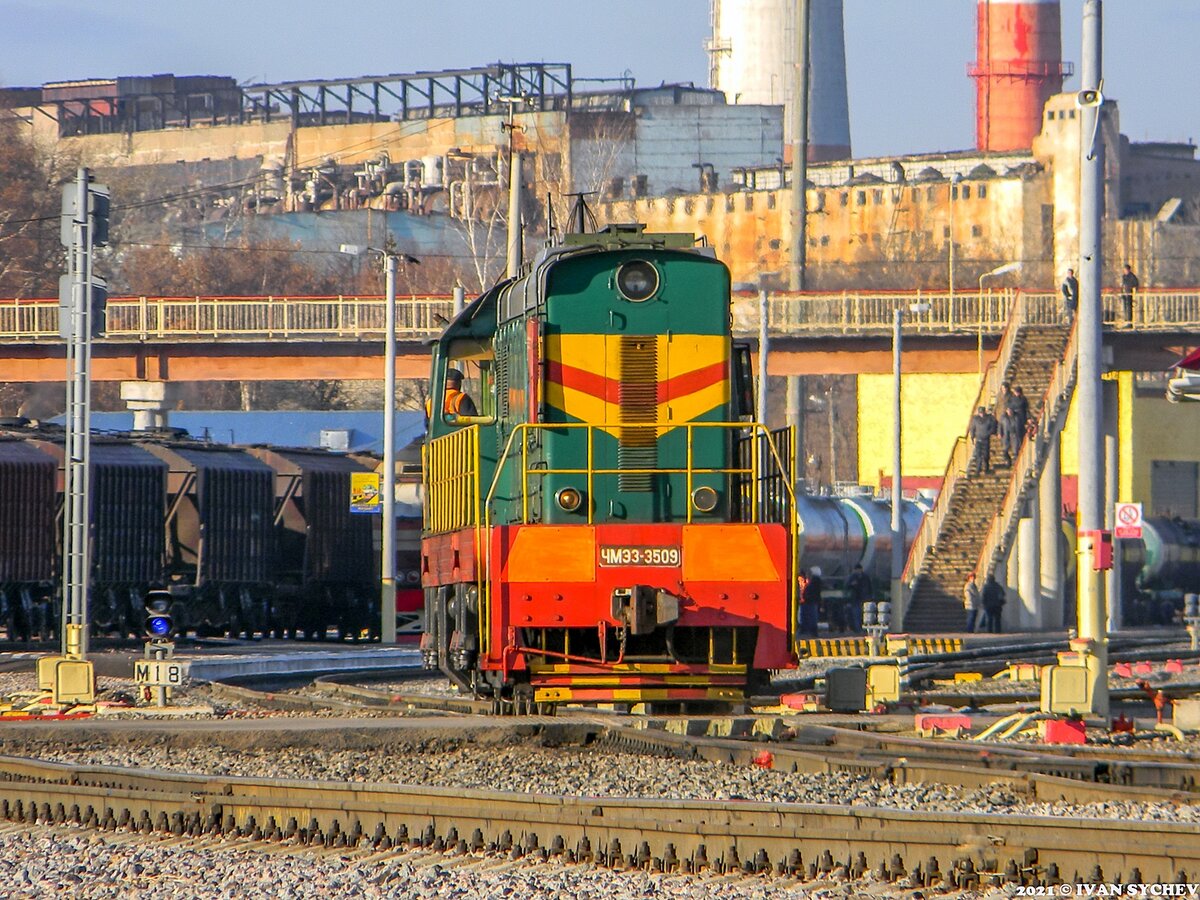 1. В каждом регионе на станциях, где составляются грузовые поезда работают свои трудяги-тепловозы. У меня сложилось так, что самый часто мною встречающийся тепловоз это чешский ЧМЭ3. Их встречалось очень много, но вот "в лицо" снимал я их не часто. И, что любопытно, эта серия тепловозов все еще "сопротивляется" тотальному перекрашиванию в корпоративный цвет: даже сейчас не редкость зеленый тепловоз ЧМЭ3, примерно как вот этот ЧМЭ3-3509, снятый в 2010 году на станции Ефремов у моста через реку Красивая Меча.