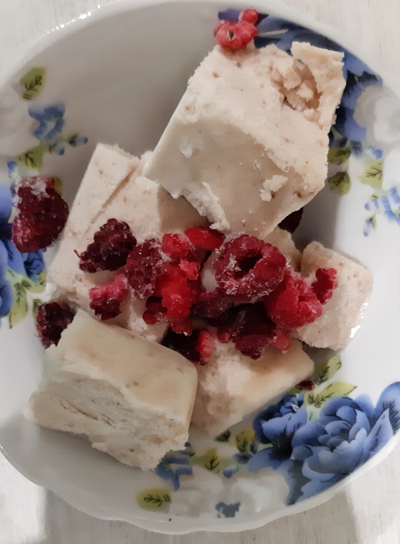 Мягкое мороженое готово. Если вы любите мороженое, которое нарезано кубиками, то можете поставить в морозилку до полного замерзания.