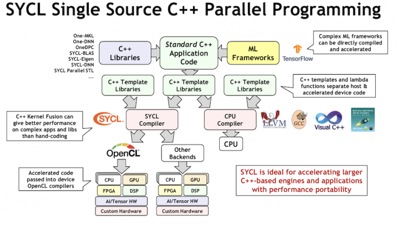 Khronos Group сообщила, что спецификация для гетерогенного программирования на основе C++ 17 под названием SYCL пересмотрена и выпущена в виде релиза SYCL 2020. Новая версия является преемником стандарта SYCL 1.2.x, с которым она обратно совместима.