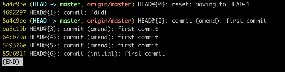 на изображении видно что произошло, указатель HEAD подвинулся в прошлое, об этом говорит надпись reset: moving to HEAD~1 и слева видно, что хеш коммита 8a4c9be теперь снова равен "старому" значению. Обратите внимание, что самый последний коммит не пропал, ссылка на него есть, достаточно просто перейти на него обратно, например так: