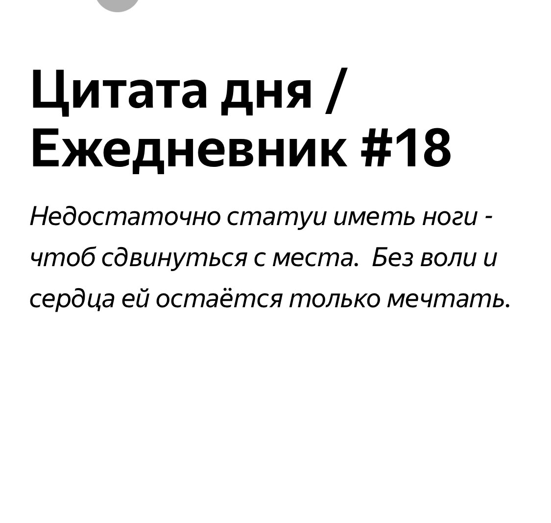 Недостаточно статуи иметь ноги - чтоб сдвинуться с места. Без воли и сердца ей остаётся только мечтать.