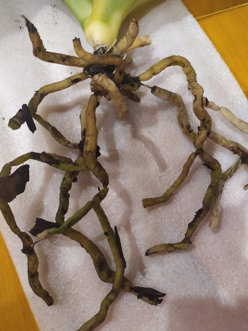 Через месяц я достала цветок, но корни продолжали гнить и два листа усохли. Итог: все же мне не удалось спасти мой милый цветок.