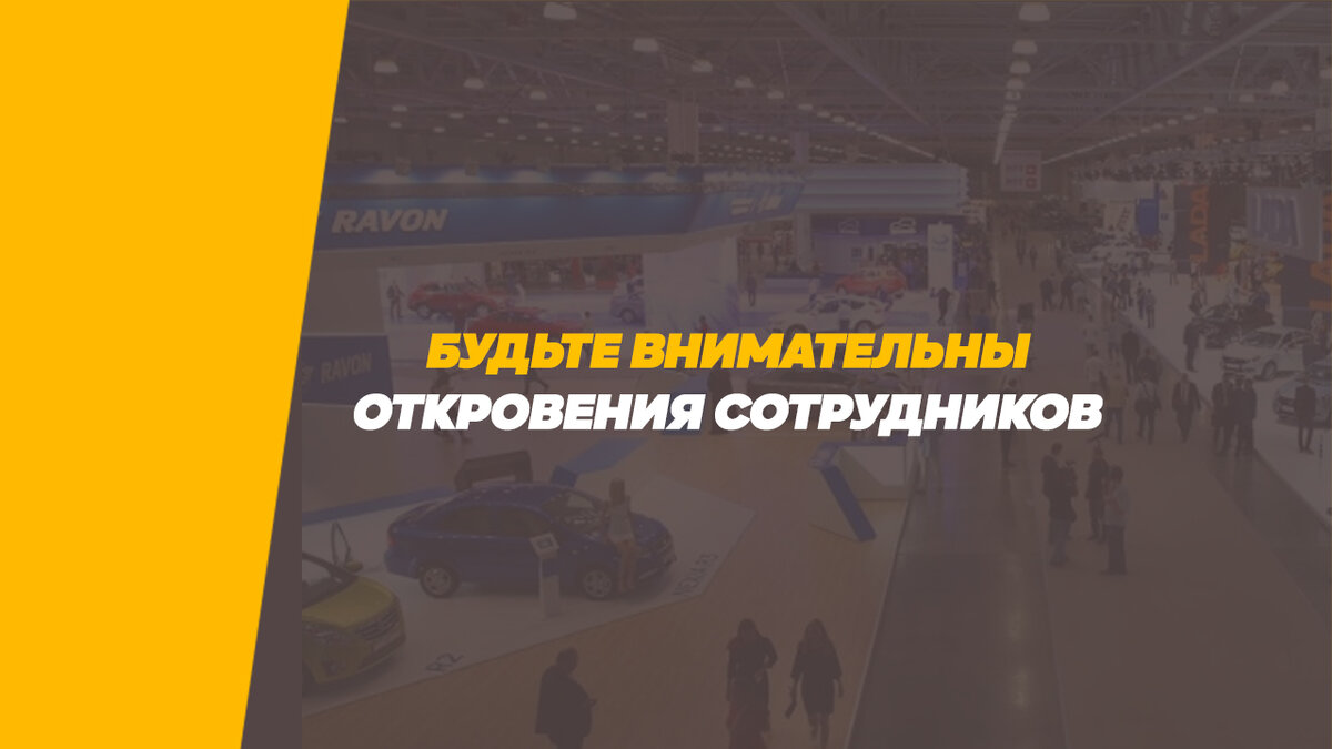 Бывшие сотрудники салонов нередко делятся историями о том, как лично продавали поддержанные автомобили как новые, навязывали различные не особо нужные услуги и отговаривали покупателя покупать какой-то автомобиль. Это всё из-за того что нужно выполнить план по продажам других автомобилей.