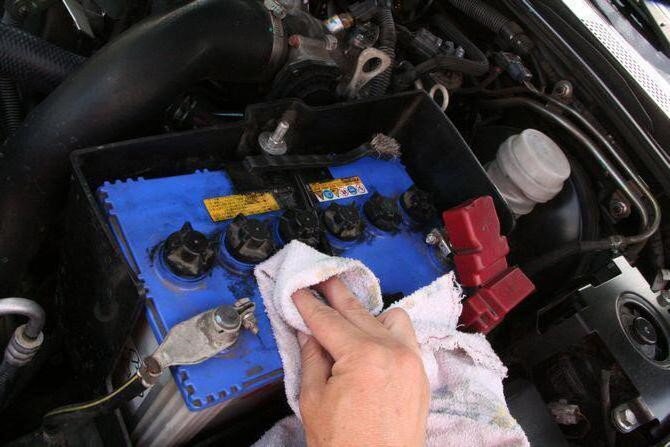 Обеспечивается это просто протиркой поверхностей батареи, особенно возле клемм. Дело в том, что грязь способствует образованию токопроводящих мостиков, дорожек, а это приводит к ускоренному разряду батареи. Итог – потеря емкости, повышенная сульфатация и скорый выход из строя аккумулятора. А решается проблема просто – надо только протереть АКБ.