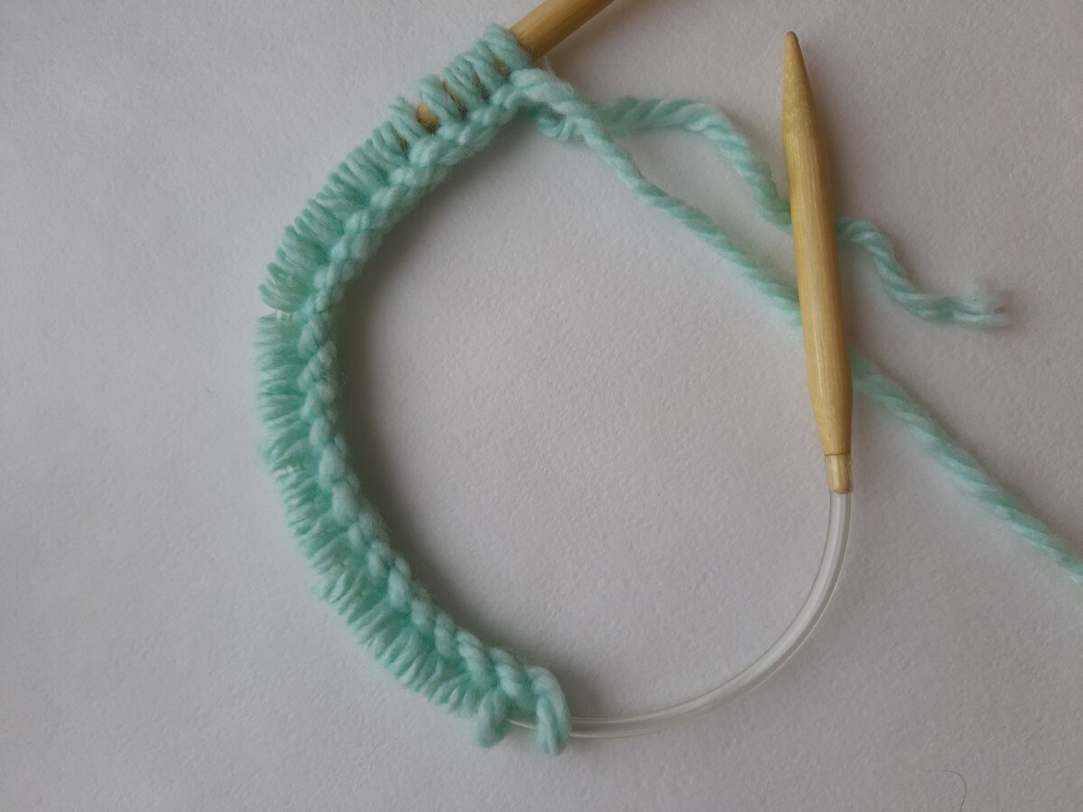 Наберите нужное количество петель любым способом и начинайте вязать по прямой платочной вязкой.