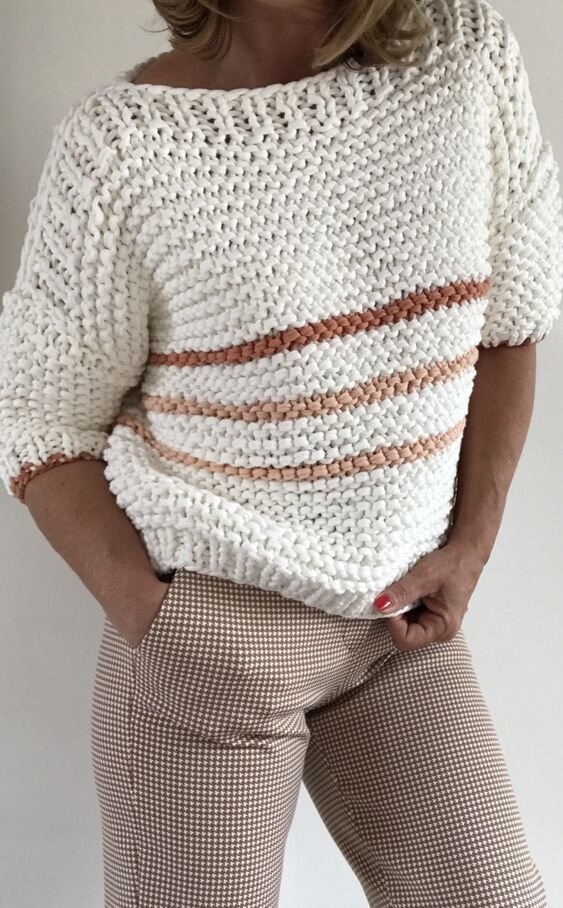 Платочная вязка сейчас очень популярна. В изделиях она выглядит современно и стильно. Предлагаю вашему вниманию подборку вязаных моделей, в которых присутствует узор платочной вязки.