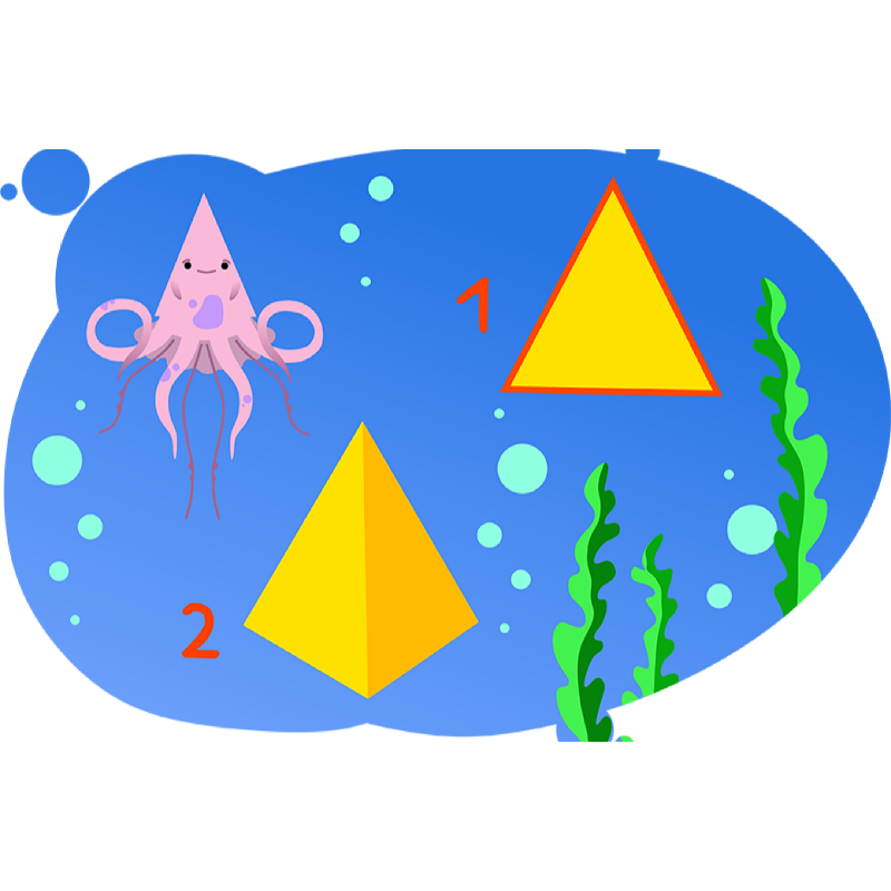 У тетраэдра есть вершины, рёбра и грани. Сосчитайте по рисунку, сколько их?