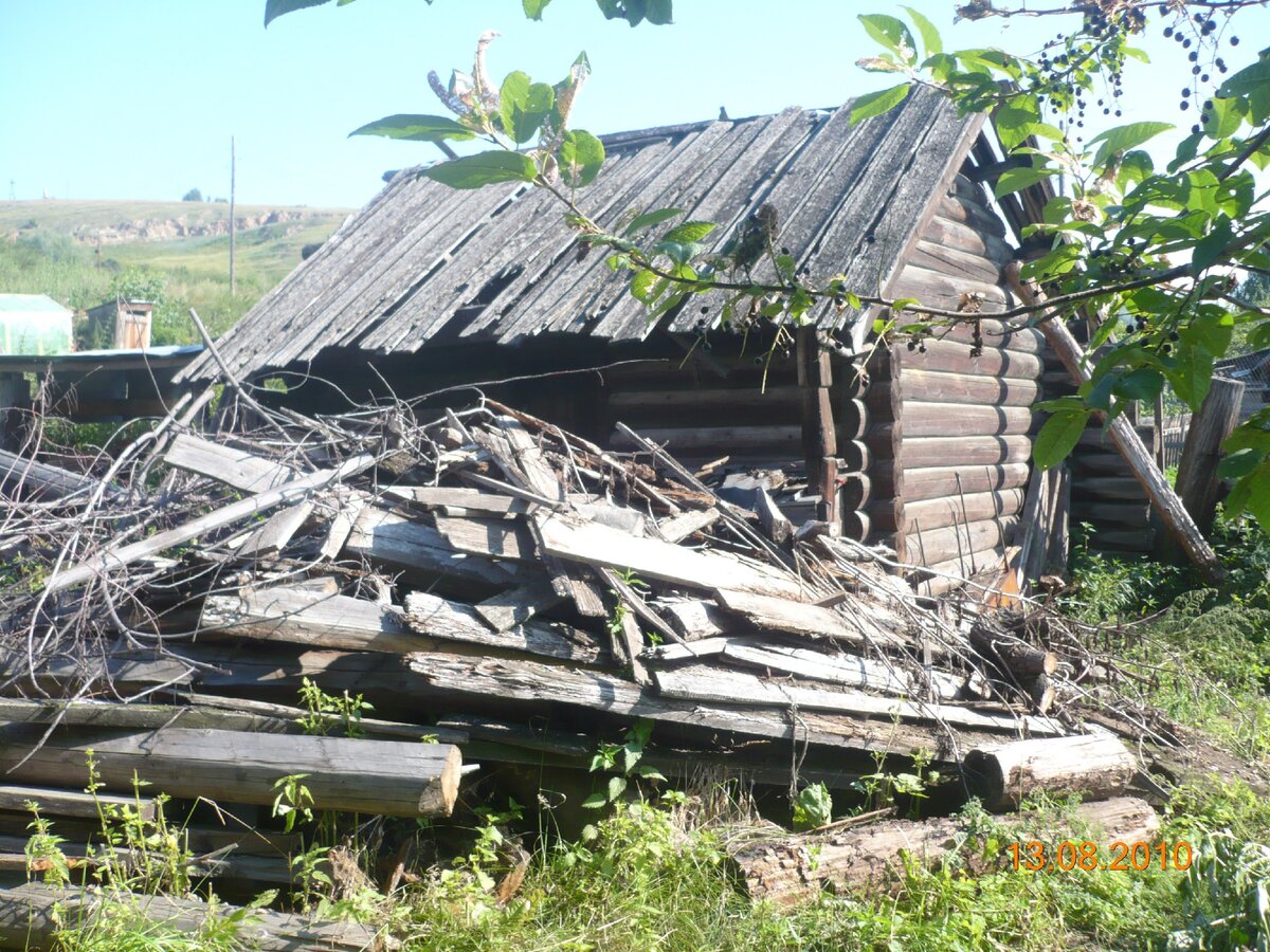 Снос сараев занял целое лето. Плюс снесенных строений - дрова и стропила для установки крыши бани, остальное - рухлядь, которую пришлось сжигать в печи.