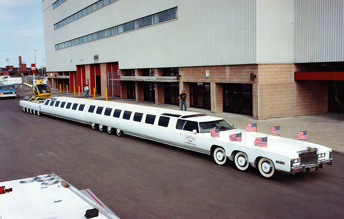 26-колесный лимузин длиной 30,5 м был сделан Джеем Орбергом из Бербанка, Калифорния, США. Он имеет множество функций, в том числе бассейн с трамплином и кровать размера «king-size».