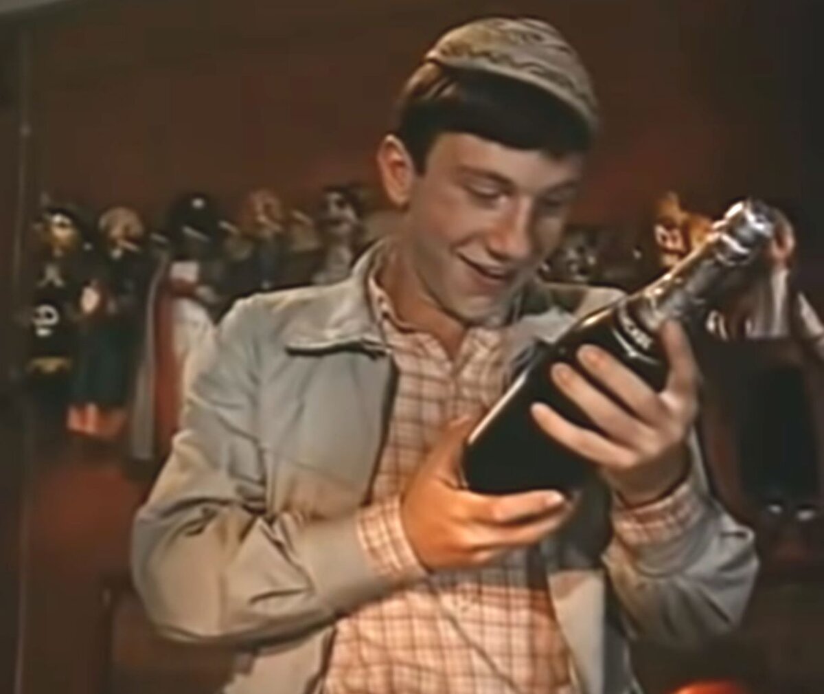 Посмотрите на еще молодого Савелия. А тема-то, тема какая поднимается! Алкоголь и несовершеннолетние: совсем еще дети пробуют шампанское.