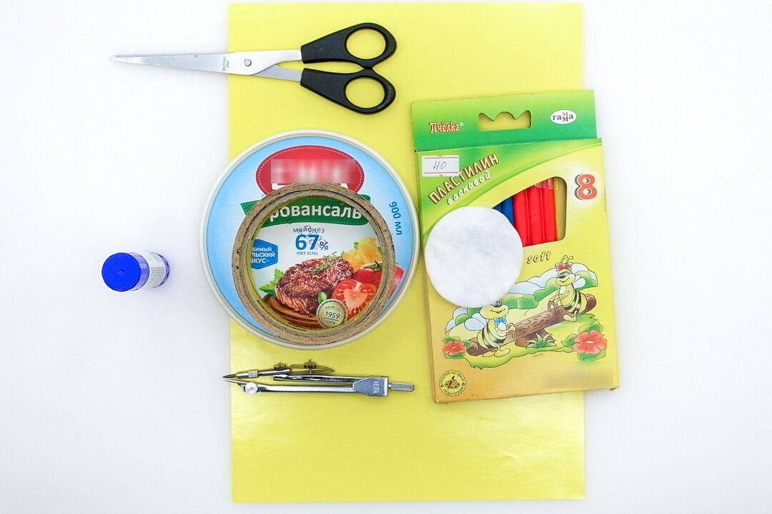 7. Из цветной бумаги жёлтого цвета вырезаем солнышко.