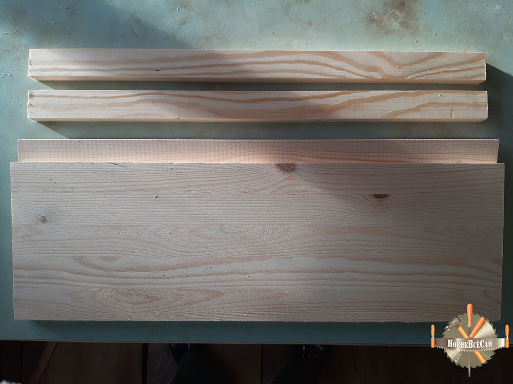 Из досок шириной 9,5 см и 14 см изготовил боковины для закрытой полки.