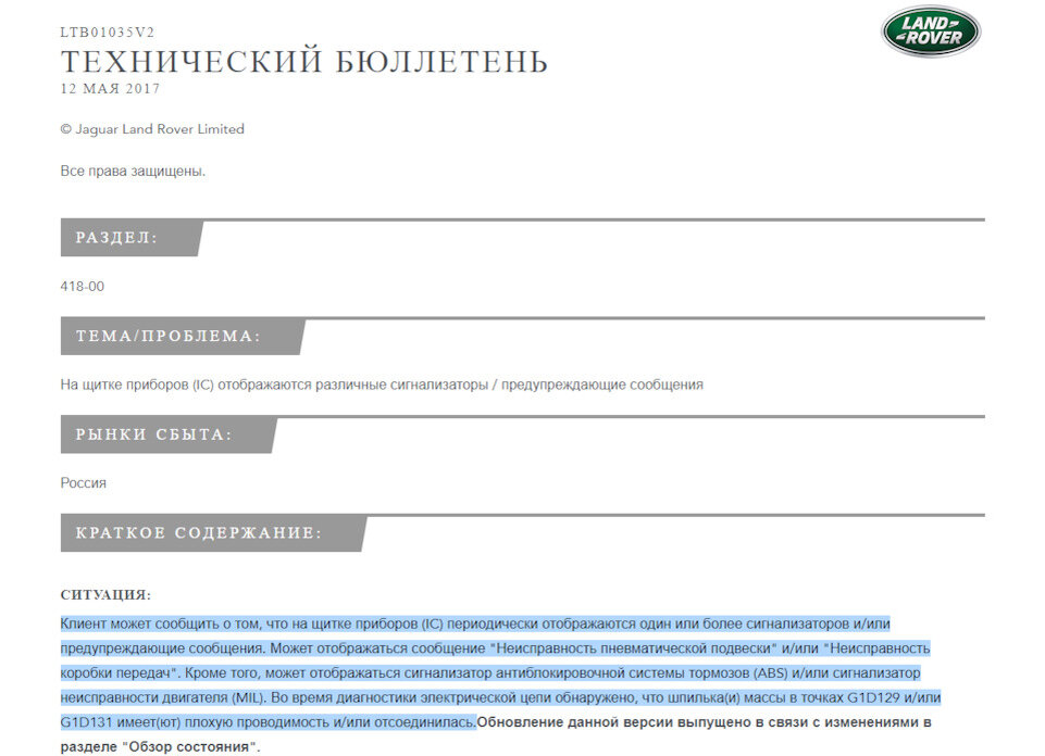 Такая проблема может быть, как на Range Rover, так и на Range Rover Sport c 2013 года.