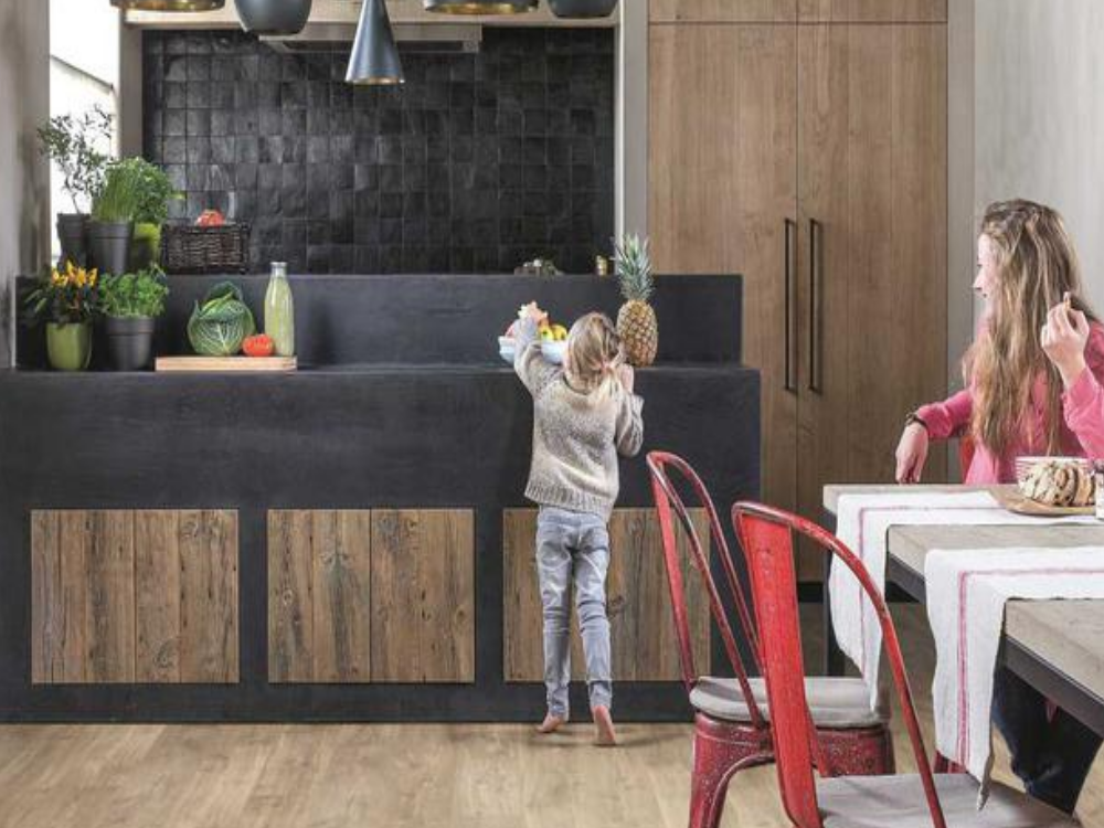 Современная виниловая плитка отличается устойчивостью к влаге, пятнам и царапинам. Более того, их можно смело разместить на существующем полу - без необходимости натирать. Если вы мечтаете о быстром и дешевом метаморфозе кухни, виниловая плитка даст хороший эффект. Особенно рекомендуем те, которые вдохновлены цементной плиткой - узорчатой, полной фантазии.