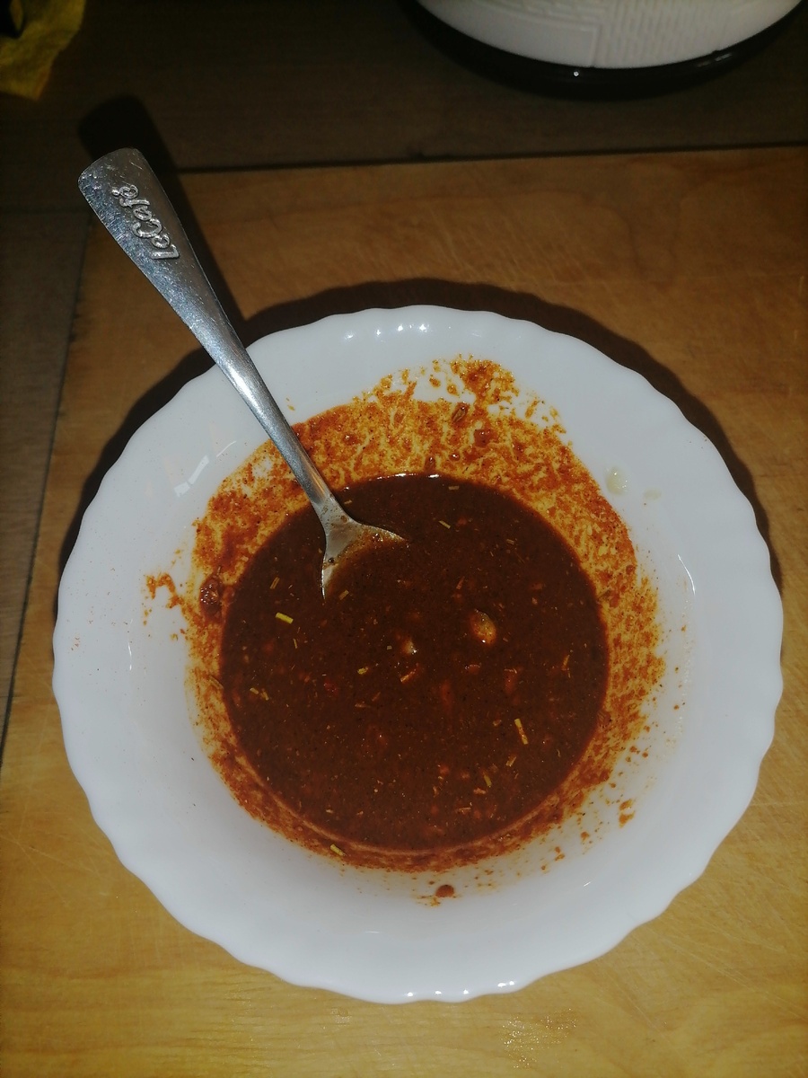 Смешиваем в соуснице или любой другой емкости приправы. Паприку, приправу к курице и соль по 1 ч.л , перец молотый по вкусу. Добавляем к приправам соевый соус, растительное масло и чеснок , всю смесь хорошо перемешиваем.