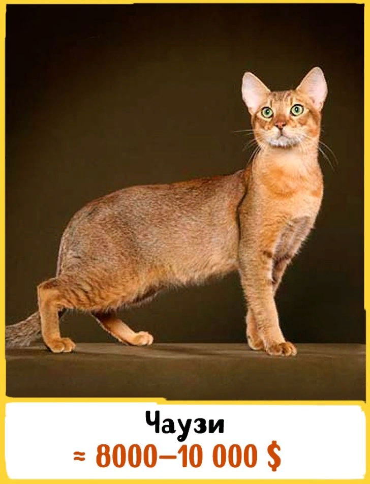 1 Чаузи Эта одна из самых редких пород кошек появилась благодаря скрещиванию домашней кошки и болотной рыси. Это очень общительные животные, которые трудно переносят одиночество. Такие кошки будут рады любой компании: человеку, другой кошке или даже собаке. Стоимость котенка варьируется от 8 000 до 10 000 $.