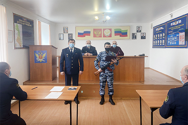 4 новобранца из числа младшего начальствующего состава, прошедших стажировку в следственном изоляторе № 2 и обучение в учебных центрах уголовно-исполнительной системы России, дали клятву соблюдать Конституцию и законы Российской Федерации, а также достойно выполнять возложенные на них обязанности по обеспечению безопасности и правопорядка.