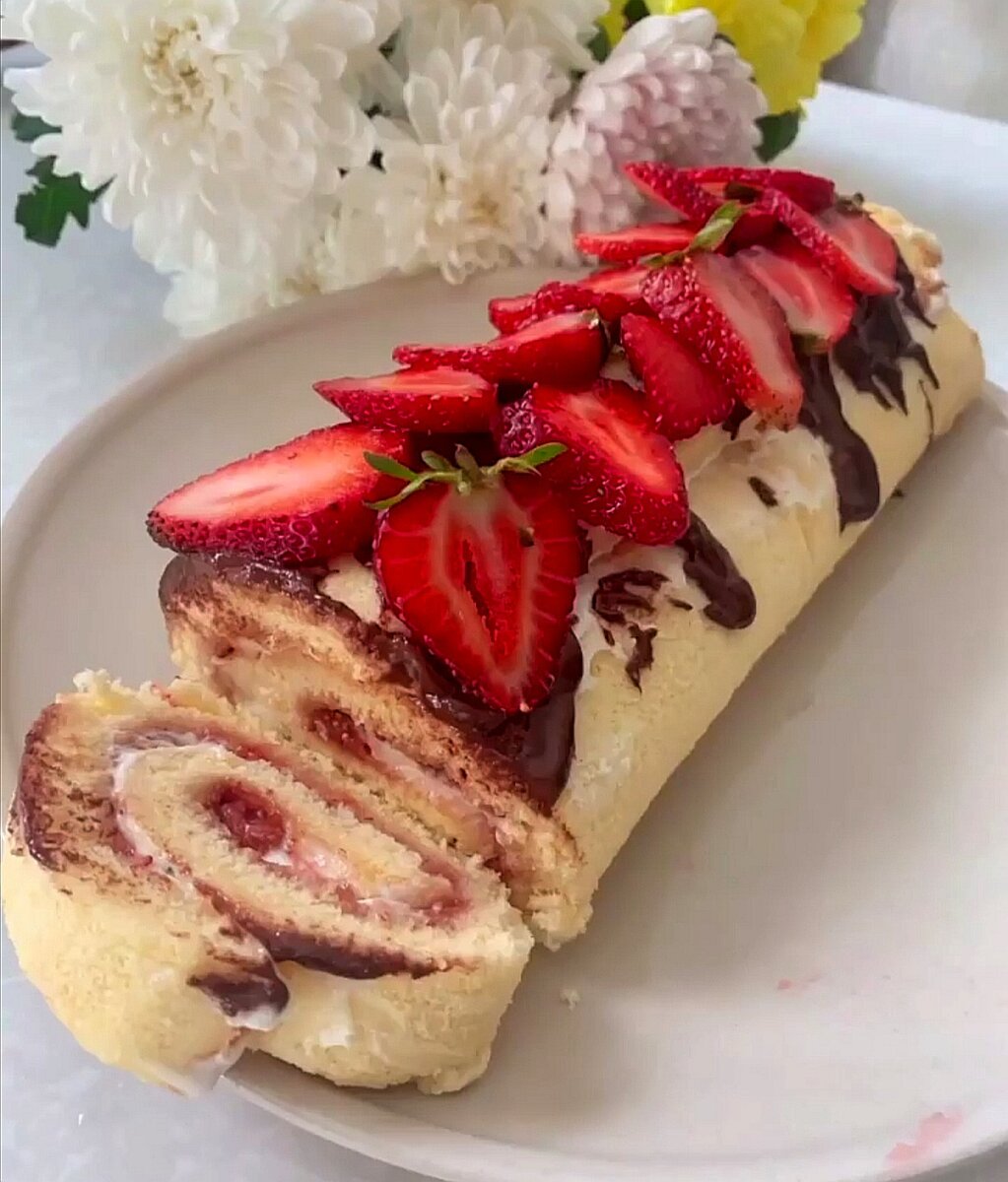 Здравствуйте. Спасибо, что читаете мой Дзен-канал. Сегодня я с вами поделюсь рецептом бисквитного рулета со сливочно-ягодной начинкой. Готовится очень быстро и получается вкусно.