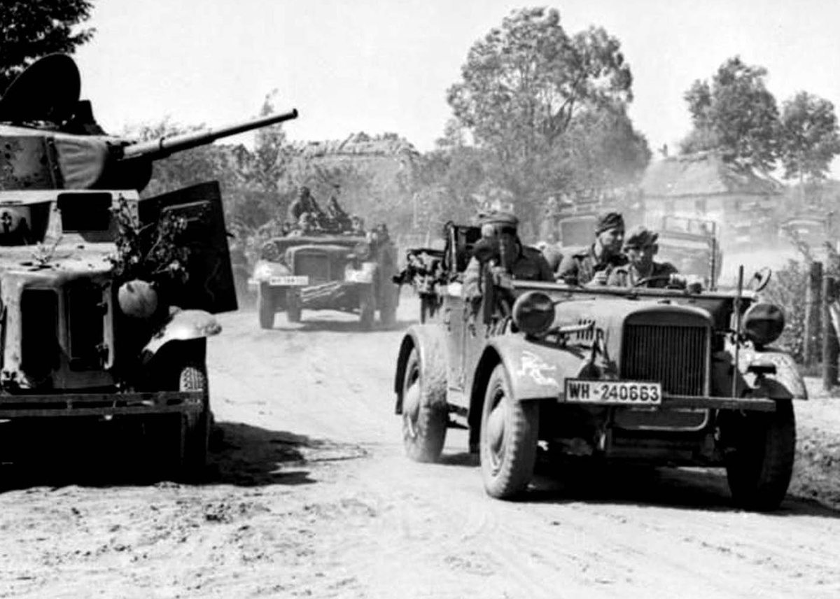 На горизонте появились мелкие точки, Макар прищурился и увидел вдалеке несколько немецких грузовиков.