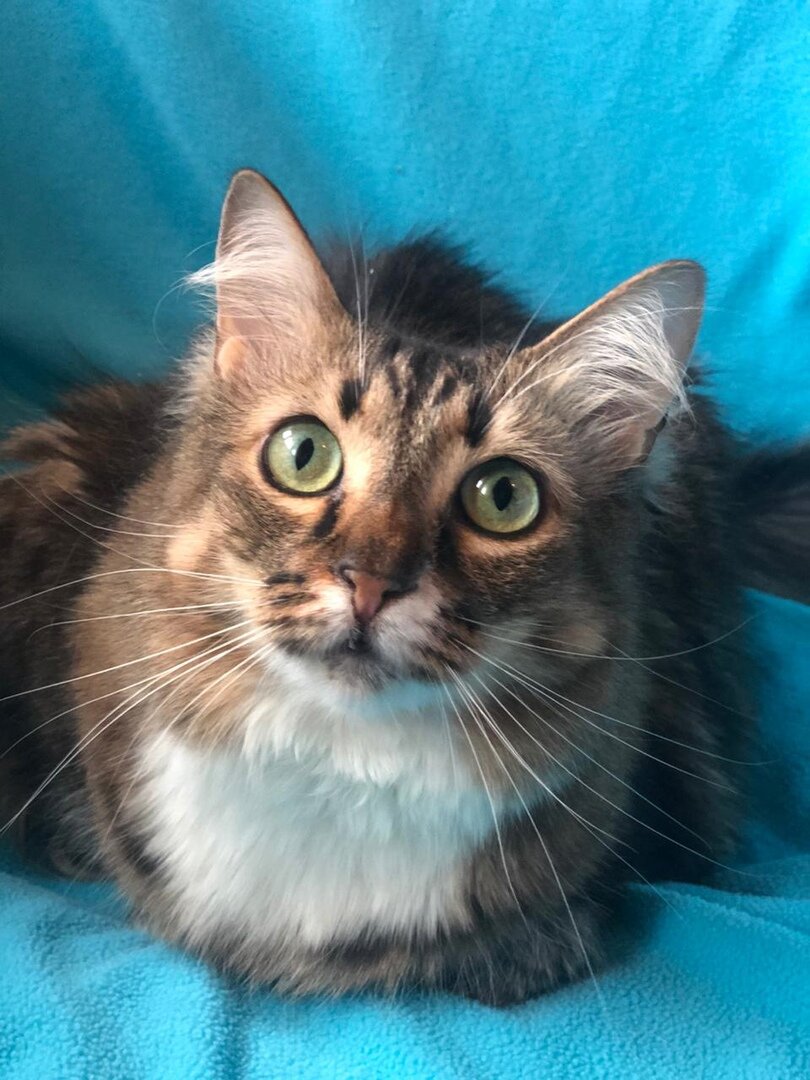 Кошечке около 3 лет. Оказалась стерилизованной, чипа не было. Походе, что ее выбросили.