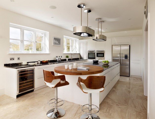 Барную стойку можно использовать в качестве рабочей поверхности, обеденного стола и места для кухонных принадлежностей, кроме того, барная стойка на кухне отличный вариант для отделения кухни от зоны гостиной, если это одна большая комната.