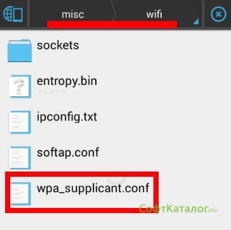 1. Android. В смартфоне, в программе Файлы, в папке data/misc/wifi/wpa_supplicant.conf, найдите файл wpa_supplicant.conf.