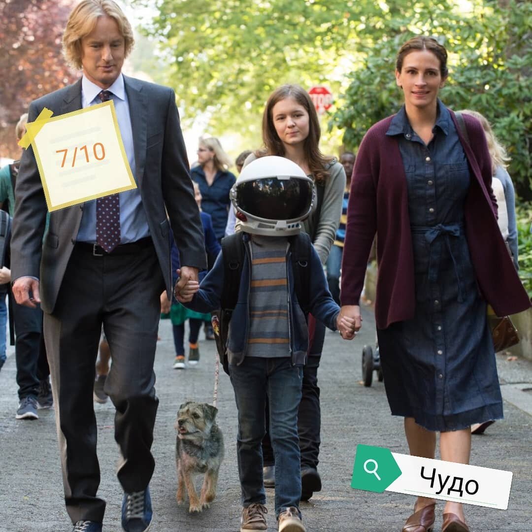 Такой добрый, семейный, весьма поучительный фильм. Легок в просмотре, 2 часа прошли незаметно. Мне очень понравился способ повествования: от лиц нескольких персонажей, довольно интересно наблюдать за главным героем с их точки зрения. Обязательно к просмотру и желательно не одному, а с семьёй например. Ведь главный герой и правда такое чудо...