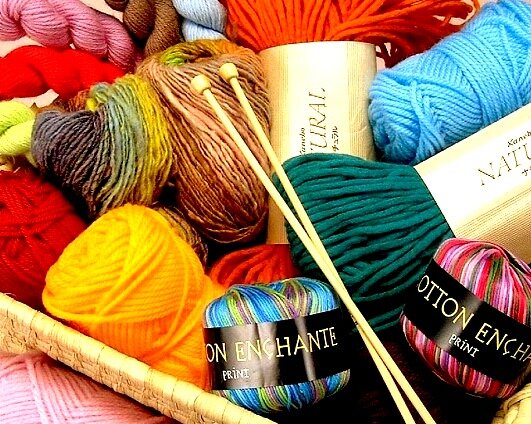 Для начала нам понадобится материалы и инструменты для шитья, я использую спицы с загнутым носиком, а также специальный продеванье для пряжи. Пряжу можно использовать любую для начала, а потом можно будет перейти на специальную пряжу или